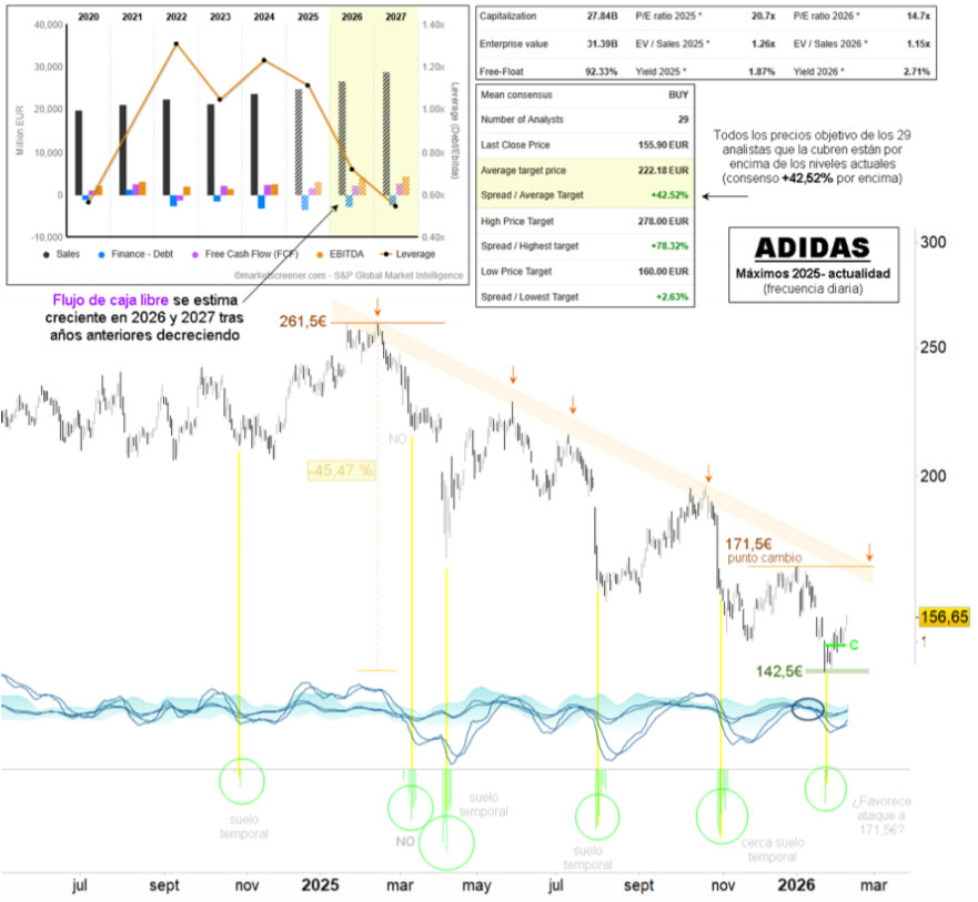Llama la atención que todas las valoraciones se sitúan por encima de los niveles actuales (consenso +42,52% por encima) y las estimaciones de flujo de caja libre son crecientes para este año y el que viene, tras años previos en caída.
