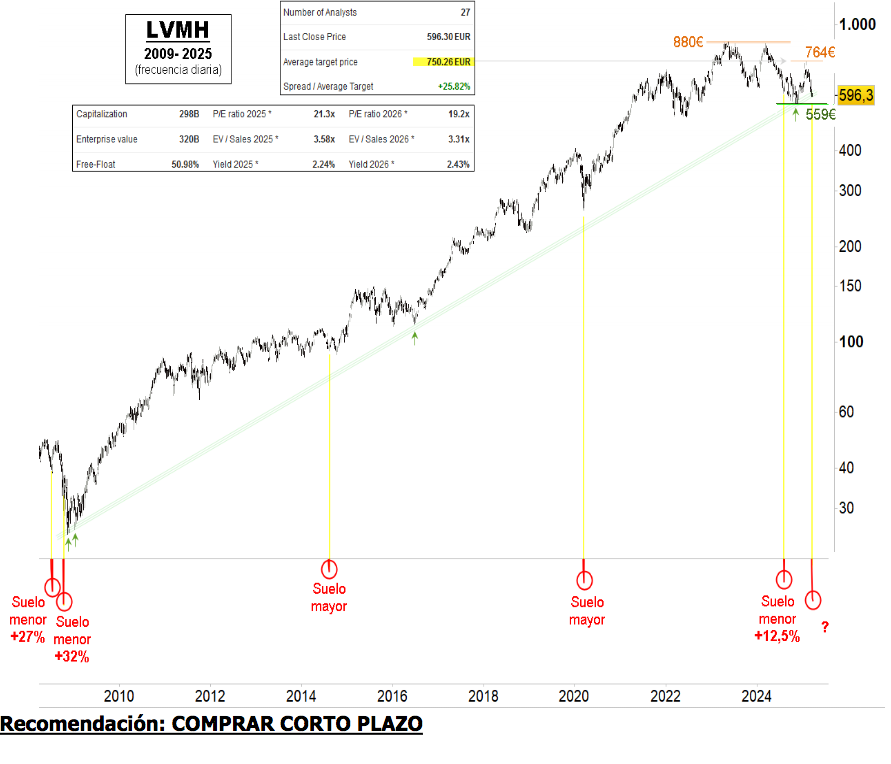 Renta 4 | El valor deshace casi por completo el rebote del 36% emprendido a mediados de noviembre, situándose de nuevo en el paso de la directriz alcista de largo plazo, donde llega con parámetros excedidos en algunos indicadores, frecuentemente en niveles atractivos de compra, al menos de cara a un rebote de corto plazo. El punto clave de soporte a respetar se sitúa en 559 euros, mínimos de noviembre. La primera zona de resistencia intermedia se localiza en 764 euros, punto cercano al precio consenso de valoración por parte de los analistas.