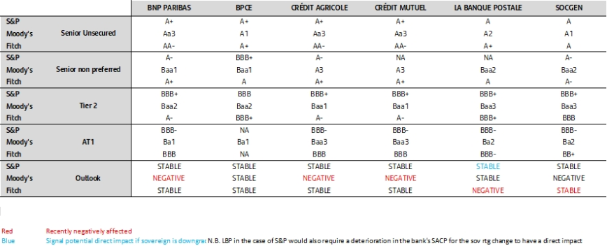 Las calificaciones senior preferred de BNP Paribas, Crédit Agricole y Crédit Mutuel podrían ser objeto de una rebaja directa
