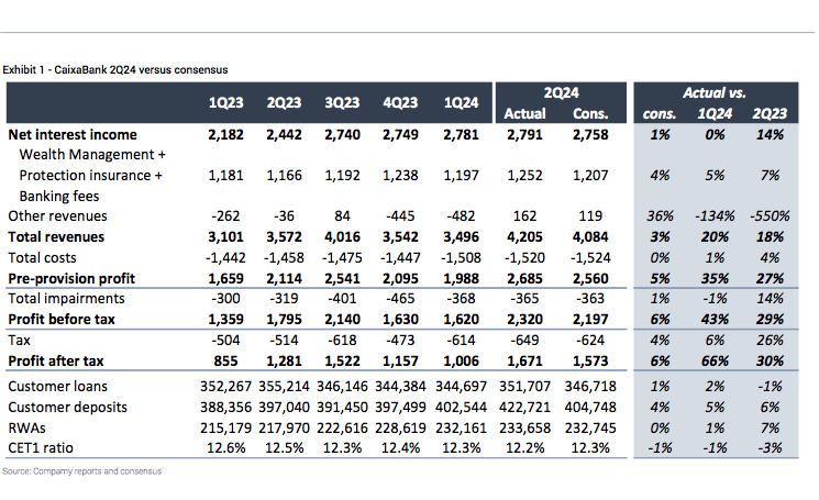 Morgan Stanley | CAIXABANK SA, OVERWEIGHT, 6 EUR, Alvaro serrano espera una reacción ligeramente positiva a unos resultados sólidos, de forma que la batida del 5% en Ppop unida a un mejor guidance permitan mantener el momentum de beneficios. Más en detalle, la batida en Ppop, ha venido impulsada por un NII un 1% mejor (flat q/q) y unas comisiones un 4% mejores, mientras que los costes, así como las provisiones totales se han mantenido bastante en línea. Destaca la mejora del guidance de crecimiento para el año a High-Single-Digits (vs Mid-Single-Digits previo y 8% de MSe) y esperan ahora un ROTE de >17% (vs 16% previo). En términos de distribución al accionista, el mgmt sigue apuntando a un objetivo de €12Bn para 2022-24E. El CET1 en 12.2% se ha mantenido en línea, incluyendo el reciente anuncio de buybacks por valor de €500M.