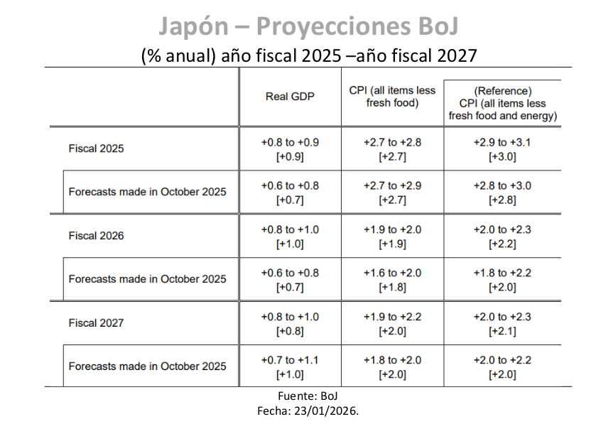 Intermoney | El Banco de Japón tuvo su encuentro esta madrugada dejando sin cambios el tipo de interés en el 0,75%. Dando totalmente por descontada esta pausa, la atención estaba en otras cuestiones, como su informe de perspectivas o el tono que estableciera el comunicado. Todas estas incógnitas toman más importancia dado el complicado escenario en el que el BoJ se reunía, dadas las oscilaciones en los bonos y las elecciones anticipadas. Sin embargo, el banco no se dejaba influenciar, y su comunicado se podía tildar como hawkish, pareciendo orientado a señalar la posibilidad de una subida en el segundo trimestre. Ya vimos un primer detalle reseñable en el hecho de que hubiera un voto, de Takata, a favor de una subida de tipos de 25 p.b.