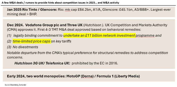 Y la actividad corporativa parece en vías de recuperarse… las medidas correctivas relativas al comportamiento ahora están sustituyendo a las medidas correctivas estructurales a la hora de abordar la competencia (Vodafone y Three UK).