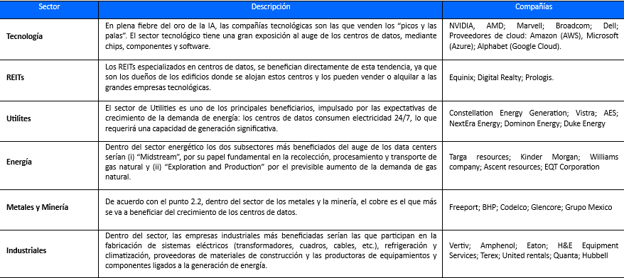 3. ¿Qué sectores se benefician de la inversión en centros de datos?