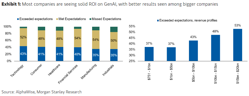 Morgan Stanley | Ed Stanley (estratega de temáticas) ha llevado a cabo una encuesta a 400 empresas de seis sectores y cinco países distintos. El estratega destaca que los obstáculos para adoptar la tecnología a nivel empresarial siguen siendo significativos, especialmente en lo que se refiere a la seguridad de los datos (citado por c.60% de las compañías encuestadas) y los riesgos reputacionales que puede conllevar una implementación apresurada de la tecnología (c.25% de los encuestados).