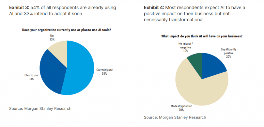 1. MS Research está de acuerdo con el mercado en la importancia de la IA para el Transporte, pero desde otra perspectiva. La IA Generativa se convertirá en algo básico, mientras que el verdadero valor añadido provendrá de la IA Física, por lo que los ganadores y perdedores serán diferentes a los que el mercado anticipa.