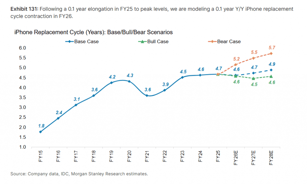 1. Por último, MS Research cree que Apple se convertirá en un distribuidor líder de tecnologías de IA con una nueva versión de Siri en la primavera de 2026. La colaboración con socios externos (por ejemplo, Google Gemini) puede acelerar los ciclos de reemplazo de iPhone a medio plazo, y Apple podría introducir una suscripción de pago para Apple Intelligence tan pronto como en 2027.