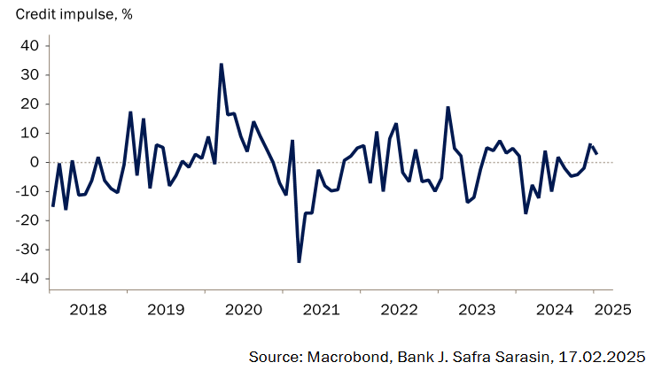 Desde principios de año, se han producido algunos signos alentadores de apoyo gubernamental a la economía. En primer lugar, los datos de crédito de enero superaron las expectativas, mostrando un impulso positivo por segundo mes consecutivo (Gráfico 1). El crecimiento del crédito en enero se vio impulsado por la fuerte emisión de deuda pública y el aumento de los flujos de nuevos préstamos, tanto a empresas como a hogares.