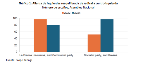 Thomas Gillet y Brian Marly (Scope Ratings) | En Francia, un Parlamento sin mayorías mitigaría el riesgo de desviaciones presupuestarias significativas debidas a los programas políticos de la extrema derecha o la izquierda radical. Sin embargo, es probable que el impulso reformista se estanque, dada la necesidad de compromiso entre los partidos centristas y los extremos. El resultado no concluyente de las elecciones legislativas anticipadas convocadas por el presidente Emmanuel Macron reduce la probabilidad de que el próximo Gobierno de Francia (rating AA/Perspectiva Negativa) implemente una ambiciosa agenda de reformas y consolidación fiscal para hacer frente a los desafíos crediticios del país.