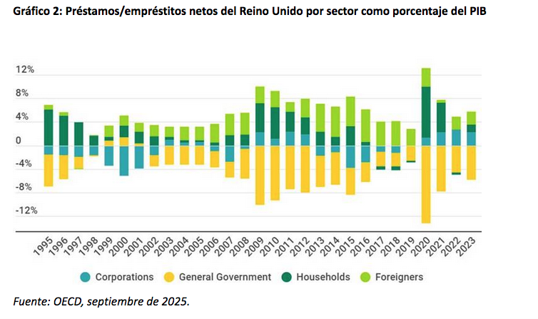 Francia está en una posición delicada, con una deuda en torno al 115% del PIB y un déficit público nominal del 5,8%. Más allá del incumplimiento de las normas del Pacto de Estabilidad y Crecimiento de la UE, los costes de servicio de la deuda están aumentando, ya que el diferencial de los bonos del Estado francés (OATs) frente al Bund alemán ha superado los 80 puntos básicos. Aunque la carga de deuda del Reino Unido es algo menor —al 101% del PIB y con un déficit público nominal del 5,7%—, también sigue una senda insostenible. Las reglas fiscales del gobierno británico pretenden mejorar sus finanzas y tranquilizar a los mercados, pero el margen de maniobra es limitado y las previsiones indican que ya se ha agotado buena parte del colchón disponible, por lo que el mercado de gilts se muestra cauteloso. A medida que muchos planes de pensiones británicos de prestación definida han completado buyouts, quedan menos compradores cautivos de gilts. Esto exige que los yields aumenten lo suficiente para atraer a compradores extranjeros en un entorno de competencia global por el capital.