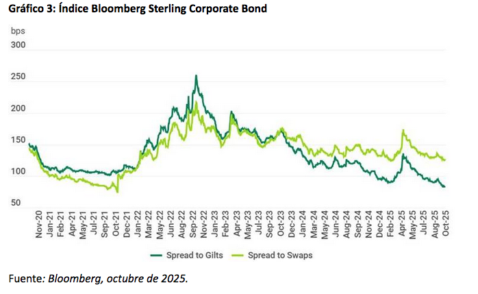 La respuesta es no. Una venta masiva de gilts u OATs provocada por la oferta o una huelga de compradores es un reajuste de la duración y las primas de riesgo, no un referéndum sobre el riesgo de impago. No se trata de una crisis soberana periférica. El sistema bancario está mejor capitalizado y es más líquido que hace una década; los mecanismos de respaldo de los bancos centrales relevantes para la estabilidad financiera están en funcionamiento; y el sector corporativo ya ha extendido significativamente sus vencimientos y cuenta con colchones de liquidez suficientes incluso con cupones de refinanciación más altos. Lo fundamental es que muchos emisores británicos y franceses son empresas globales con ingresos en el extranjero, coberturas naturales y poder de fijación de precios. Sus flujos de caja no dependen directamente del PIB doméstico y sus opciones de financiación son globales. Pero ¿hasta qué punto serán sensibles los rendimientos corporativos y los diferenciales de crédito ante un repunte en los bonos soberanos?