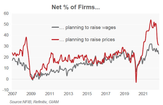 Los datos del IPC de septiembre dieron una desagradable sorpresa, ya que la tasa subyacente subió al 6,6%: la relajación de la oferta ha hecho bajar la inflación al 6,6%, tras el pico del 11% de principios de año, pero la inflación de los servicios sigue tendiendo al alza (6,5%, frente al 4% de enero). Según las estadísticas, las empresas esperan una reducción de su poder de fijación de precios, y un mercado laboral menos tenso debería moderar el crecimiento de los salarios. Sin embargo, el crecimiento del importante componente de los alquileres del índice de precios no va a moderarse pronto, ya que se ajusta a un desfase de tres/cuatro trimestres con respecto a las variaciones de los precios de la vivienda, que acaban de empezar a remitir: en agosto, el crecimiento interanual del índice Case Shiller bajó del 21% a un todavía elevado 13%.