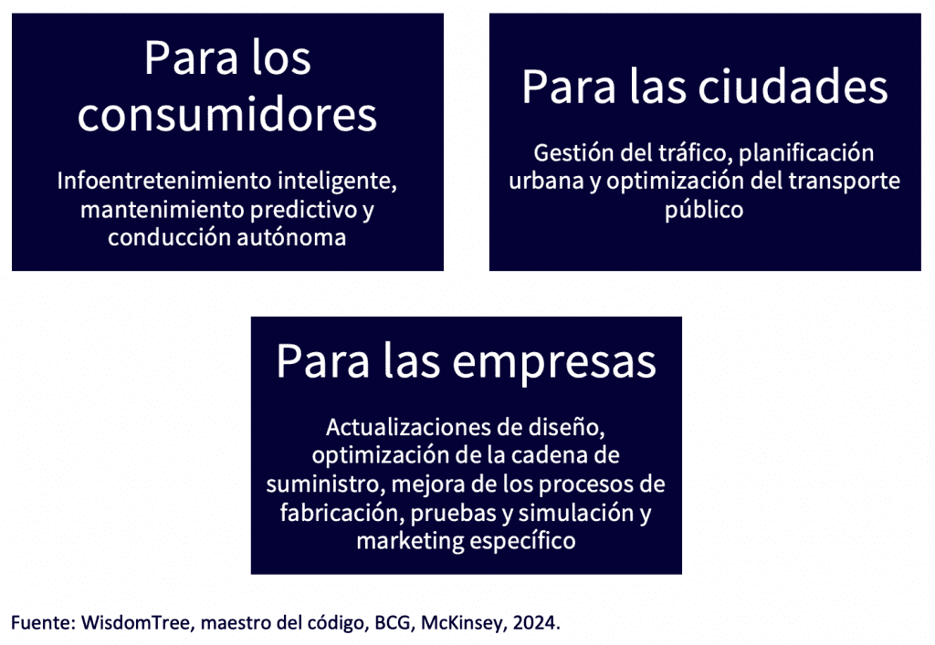 En WisdomTree, creemos que la llegada de la inteligencia artificial (IA) es potencialmente tan revolucionaria, si no más, que la revolución de Internet. Tim Berners-Lee, inventor de la World Wide Web declaró sobre su potencial tres décadas después de su invención: “La Web tal y como yo la concebí, aún no la hemos visto. El futuro sigue siendo mucho más grande que el pasado”. En la actualidad, la revolución de la IA no ha hecho más que empezar y los automóviles podrían ser uno de los dispositivos que la impulsen hacia la siguiente fase.