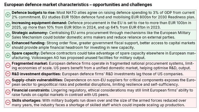 Scope Ratings | El rearme de Europa impulsará la demanda de las empresas de defensa de la región, pero pondrá a prueba las capacidades de producción, I+D, cadenas de suministro y acceso al capital del sector.