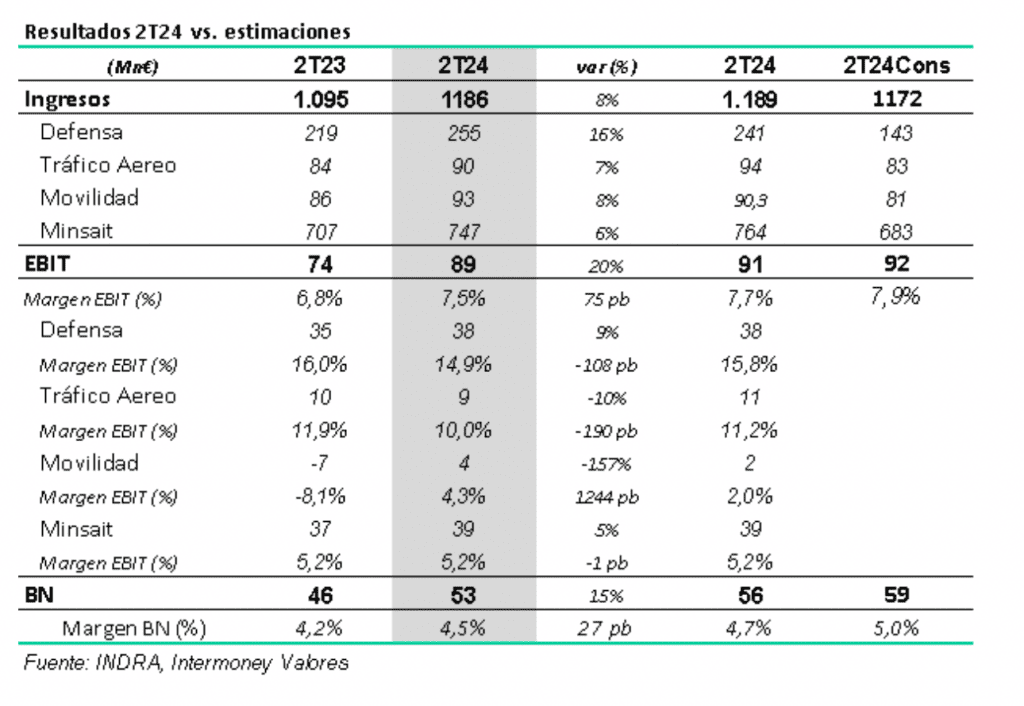 El beneficio neto de Indra se sitúa en 53 M€ (+15% yoy) con mayores costes financieros; mejoran el guidance FY24