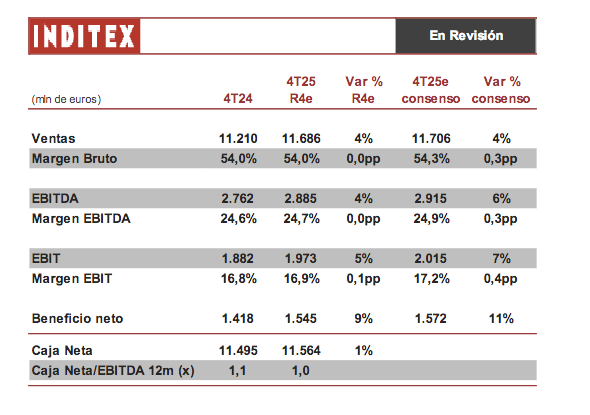 Renta 4 | Inditex publica resultados 4T25 el miércoles 11 de marzo antes de la apertura y celebrará la conferencia a las 9:00h. P.O. y recomendación En Revisión (antes 50,0 eur y MANTENER).