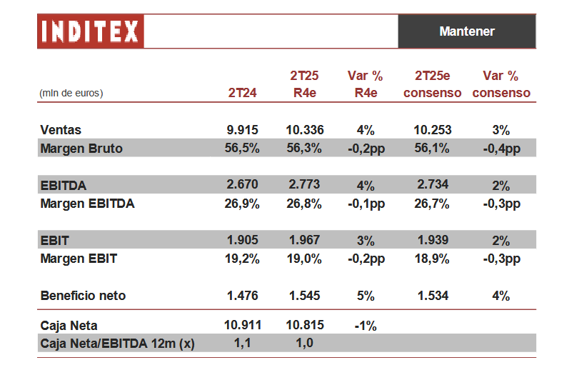 Renta 4 | Inditex publica resultados del 2T25 el próximo miércoles 10 de septiembre antes de la apertura y celebrará la