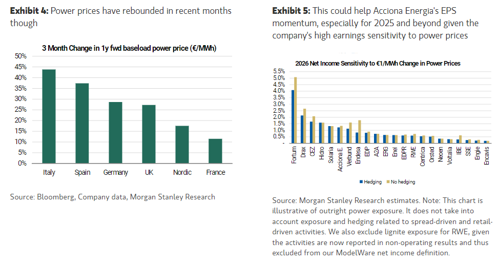 Morgan Stanley | Nuestro analista Arthur Sitbon cierra el corto sobre la compañía tras haber recortado guidance dos veces ya en 2024, en línea con su tesis. Desde la valoración de mercado actual y a medida que los precios de la energía recuperan, Sitbon ve un perfil algo más equilibrado para la compañía durante el 2S24. Sin embargo, dado el nivel de apalancamiento y el riesgo de ejecución, el experto cree que hay otras formas mejores jugar el rebote del sector, como Orster o EDPR.
