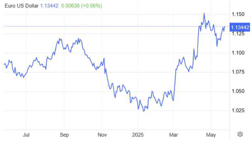 Alphavalue/DIVACONS | El EUR/USD sigue indicando la preocupación de los inversores por la deuda estadounidense, pero no se prevé una reasignación generalizada de activos europeos. Considerando la amenaza arancelaria de Donald Trump contra la UE, no tendría sentido. La Unión Europea sufriría un duro golpe si se impusieran aranceles del 50%.