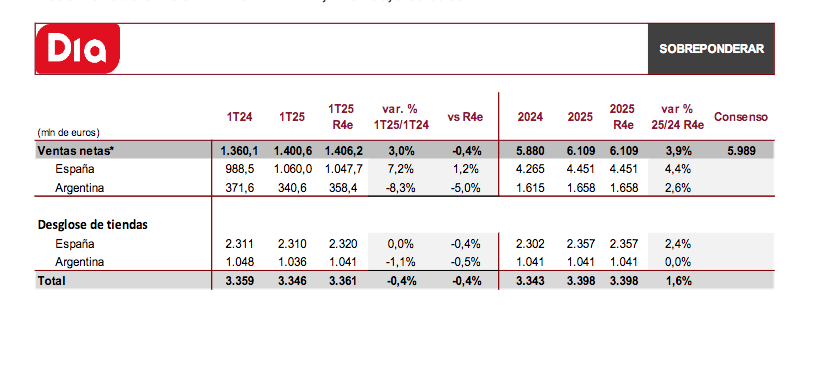Renta 4 | DIA ha publicado su avance de ventas correspondiente a un 1T245 registrando un crecimiento en ventas netas del +6,5% i.a., en línea con nuestra estimación, y +3% i.a. teniendo en cuenta el impacto por tipo de cambio en Argentina.