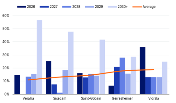 Calendario de amortización de la deuda de determinados fabricantes europeos de vidrio 2026-2030