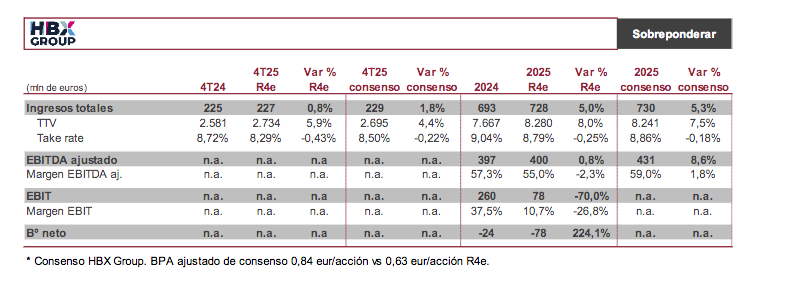 Renta 4 | HBX Group publicará sus resultados correspondientes a 4T25 y ejercicio 2025 de acuerdo con su calendario fiscal, el próximo miércoles 26 de noviembre antes de la apertura de mercado, y ofrecerá una conference call el mismo día a las 10:30h CET (que podrá seguirse a través de su web).