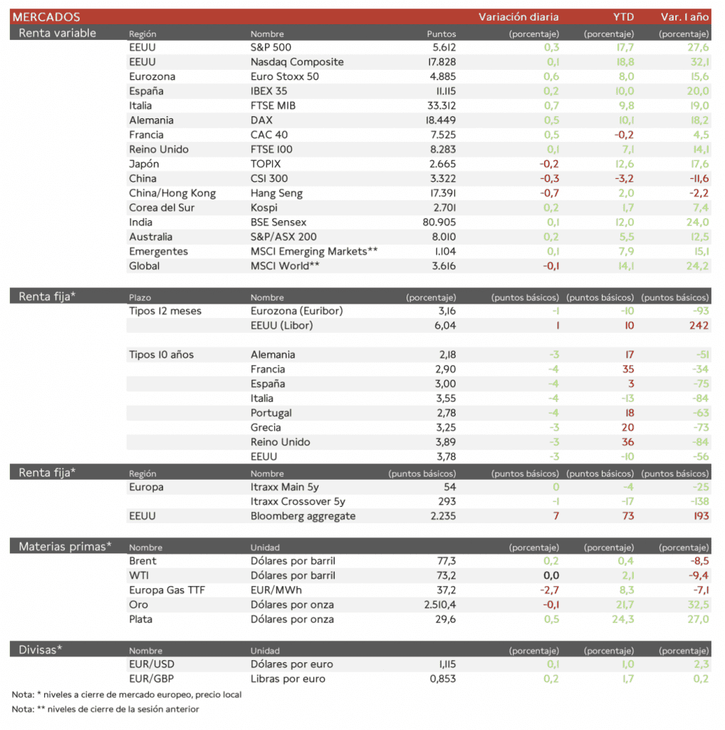 Jornada de ligeras caídas en las TIRes de los principales bonos soberanos, con el mercado aumento su confianza en los recortes de la Fed. Sin embargo, Michelle Bowman, gobernadora de la Reserva Federal ha comentado que sigue siendo cautelosa sobre cualquier cambio en la política monetaria por los riesgos al alza para la inflación, advirtiendo que no deben reaccionar exageradamente a los datos.