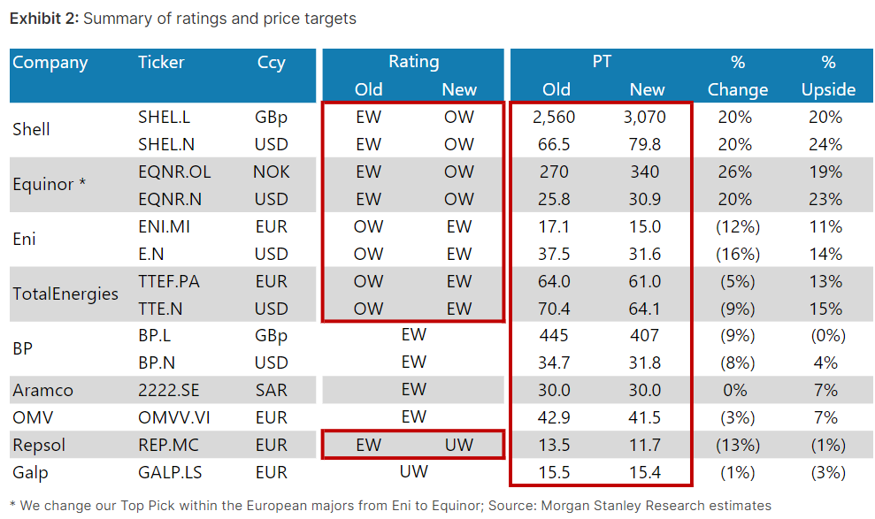 Martijn mantiene una exposición con perfil defensivo, con Overweight (OW) Top Pick Equinor (gas) y OW en Shell (balance) y neutralizando en Eni y TotalEnergies y bajando Repsol a Underweight (UW).