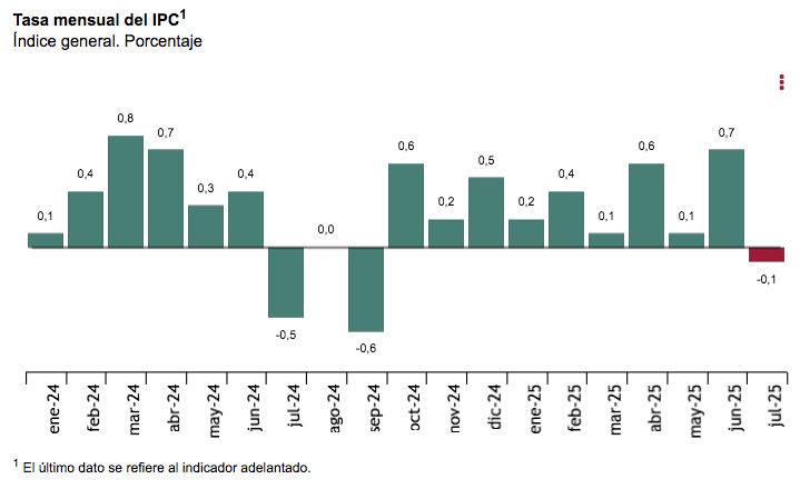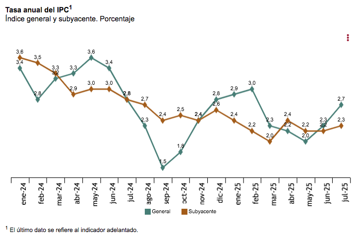 CdM | La inflación anual estimada del IPC en julio de 2025 es del 2,7%, de acuerdo con el indicador adelantado elaborado por el Instituto Nacional de Estadística (INE).