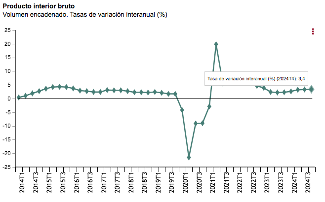 Crecimiento interanual del PIB del 3,4% en el cuarto trimestre