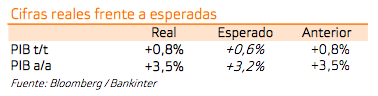 Dana), que de nuevo nos lleva en términos anuales a nuestro escenario optimista (+3,2% a/a vs +3,1% esc. Central). Lo más positivo es la recuperación en este último trimestre de la Inversión. La Productividad sigue siendo una variable a seguir, se modera ligeramente en el último trimestre. Nuestras estimaciones (centrales) para los próximos ejercicios apuntan a una moderación del crecimiento hacia +2,2% a/a en 2025 y +1,9% en 2026.