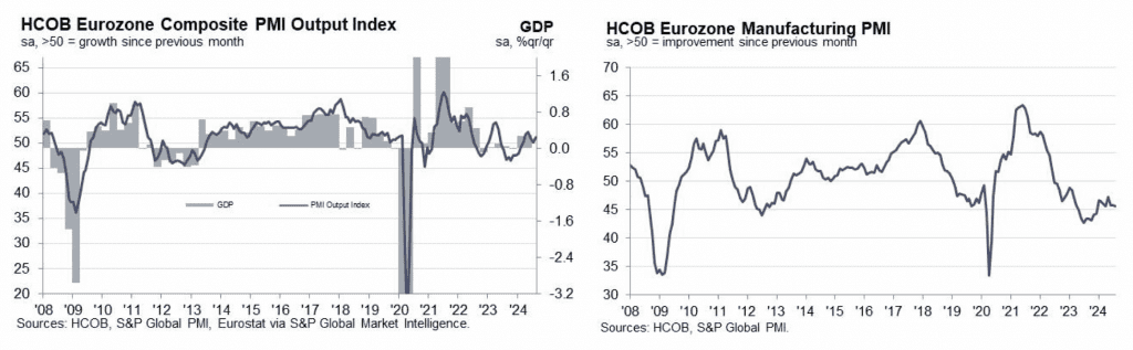 El PMI Compuesto de la Eurozona sube a 51,2 puntos: los servicios registran un crecimiento más fuerte gracias a los JJOO pero las manufacturas siguen en contracción
