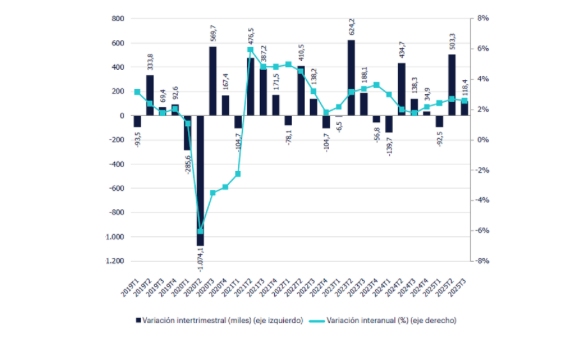Finalmente, en relación a la negociación salarial, el informe recoge una desaceleración hasta septiembre al situarse en el entorno del 3,3%, seis décimas por debajo de lo pactado un año atrás.