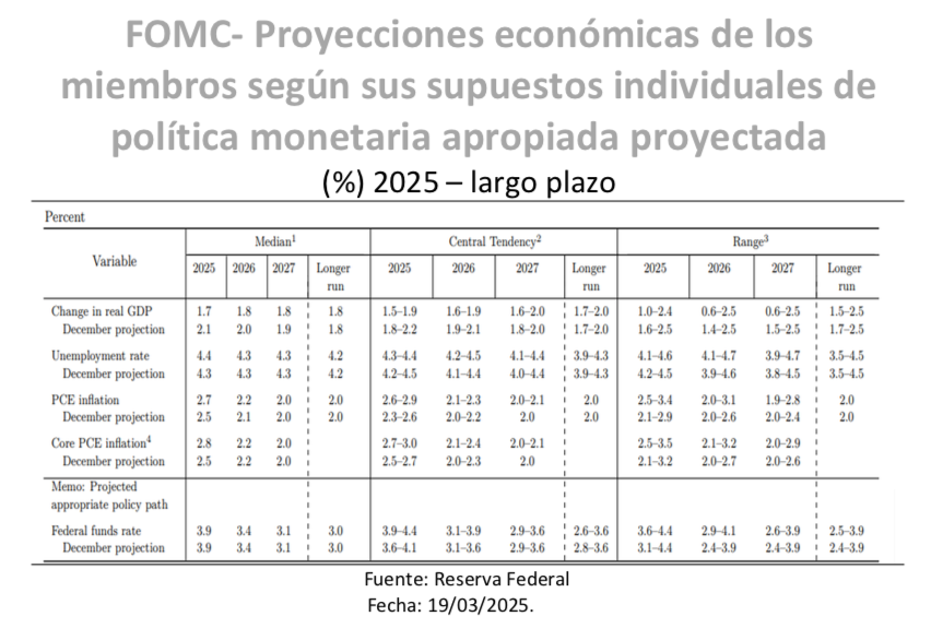 Intermoney | Sabíamos que, a pesar de mantener la horquilla de los fed funds sin cambios en el 4,25%-4,50% la reunión de la Reserva Federal iba a ser de suma importancia debido al nuevo panorama político y la actualización del Resumen de Proyecciones Económicas. No nos equivocábamos. La Fed mantenía su encuentro en una posición complicada como resultado de la incertidumbre derivada de la guerra comercial en expansión. Estas tensiones comerciales son un desafío para el banco, puesto que amenazan con frenar el crecimiento, pero también aumentar los precios y así quedaban recogidas en su cuadro macro para el que el banco revisaba a la baja el crecimiento y al alza los precios. Previamente, en el comunicado ya se hacía mención explícita a los nuevos riesgos. En el mismo se indicaba que la “incertidumbre sobre la perspectiva económica ha aumentado” y, lo que era más importante, se eliminaba la referencia de que los riesgos para el empleo y la inflación estaban “aproximadamente equilibrados” lo que realza más la compleja situación presente.