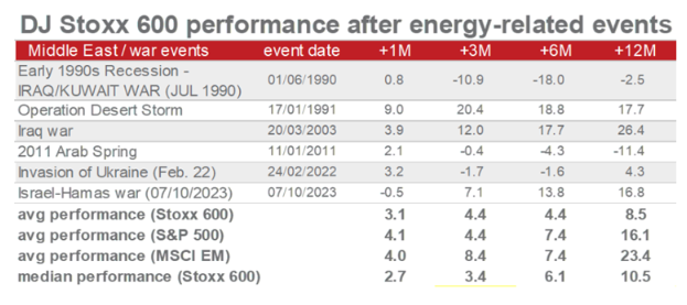 Pero, por ahora, el estrecho de Ormuz sigue prácticamente cerrado. Las acciones estadounidenses siguen mostrando resistencia, respaldadas también por los flujos hacia el dólar estadounidense como valor refugio. Si analizamos la historia para contextualizar, más que para hacer predicciones, las crisis relacionadas con la energía solo han provocado caídas bursátiles de corta duración: en los dos primeros meses tras estos acontecimientos, las acciones estadounidenses y de la zona euro cayeron una media del 3,5% y el 4,6%, con descensos máximos del 4,5% y el 8,6%. Más allá de este periodo inicial, la rentabilidad tendía a recuperarse: al cabo de tres meses, los rendimientos ya eran positivos (alrededor del 4,5% en ambos mercados) y las ganancias solían reforzarse durante el año siguiente, alcanzando aproximadamente el 10% en 12 meses.