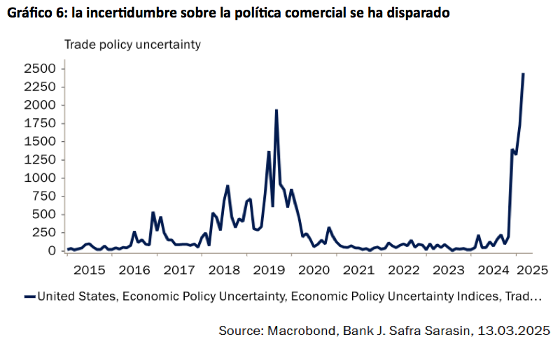 Raphael Olszyna-Marzys (J. Safra Sarasin Sustainable AM) | La semana pasada fue la peor para la renta variable desde septiembre de 2024, marcada por el incremento de la incertidumbre política y la creciente preocupación por una desaceleración económica. A pesar de que los fundamentales económicos continúan siendo sólidos, existe un riesgo creciente de que el experimento político de la administración estadounidense se traduzca en un crecimiento mucho más débil en los próximos trimestres, sin aportar los beneficios a largo plazo que se anticipaban. Es probable que la Fed mantenga su postura actual, por ahora, pero si los riesgos a la baja para el crecimiento y el empleo superan las presiones inflacionistas derivadas de los aranceles, podría verse obligada a recortar los tipos más de lo previsto.