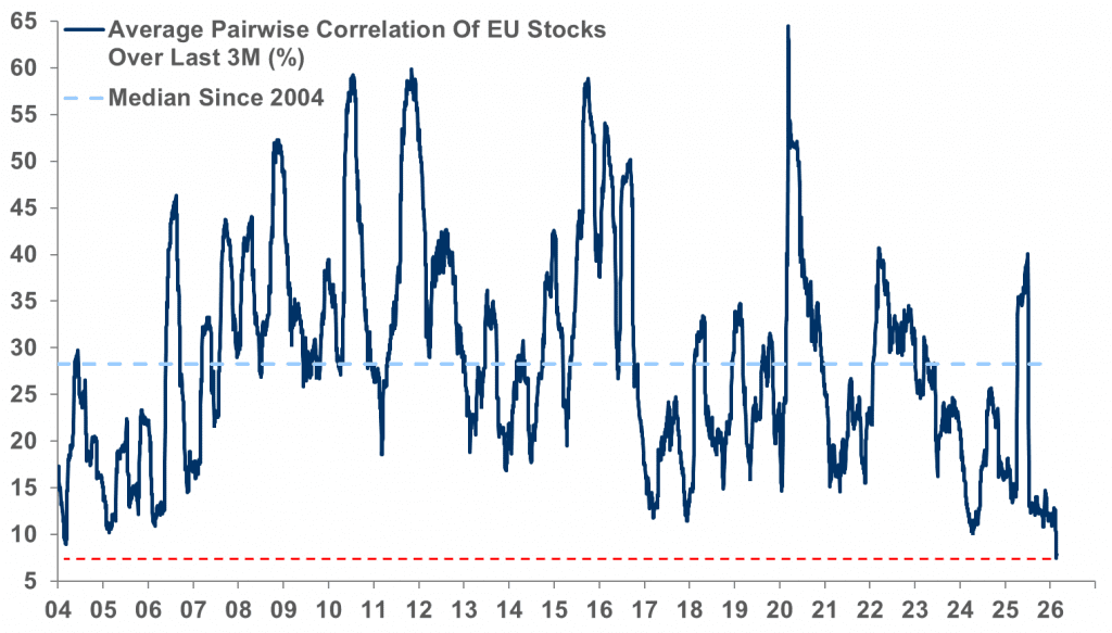 La correlación entre acciones europeas está en mínimos históricos