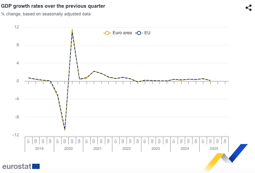 No obstante, cabe recordar que, en el primer trimestre de 2025, la zona euro registró un crecimiento económico del 0,6%. Además, en comparación con el mismo trimestre del año anterior, el PIB desestacionalizado ha aumentado un 1,4% en la eurozona.