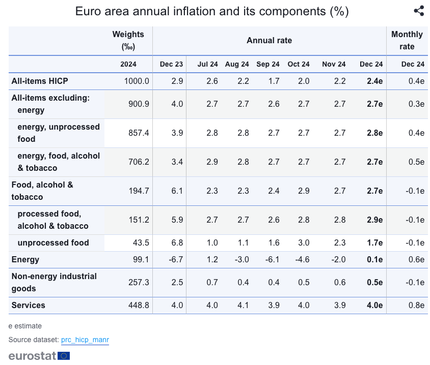 CdM | La inflación de la eurozona repuntó dos décimas en diciembre de 2024, hasta alcanzar una tasa interanual del 2,4%, según la estimación preliminar publicada este martes por la oficina europea de estadística Eurostat.