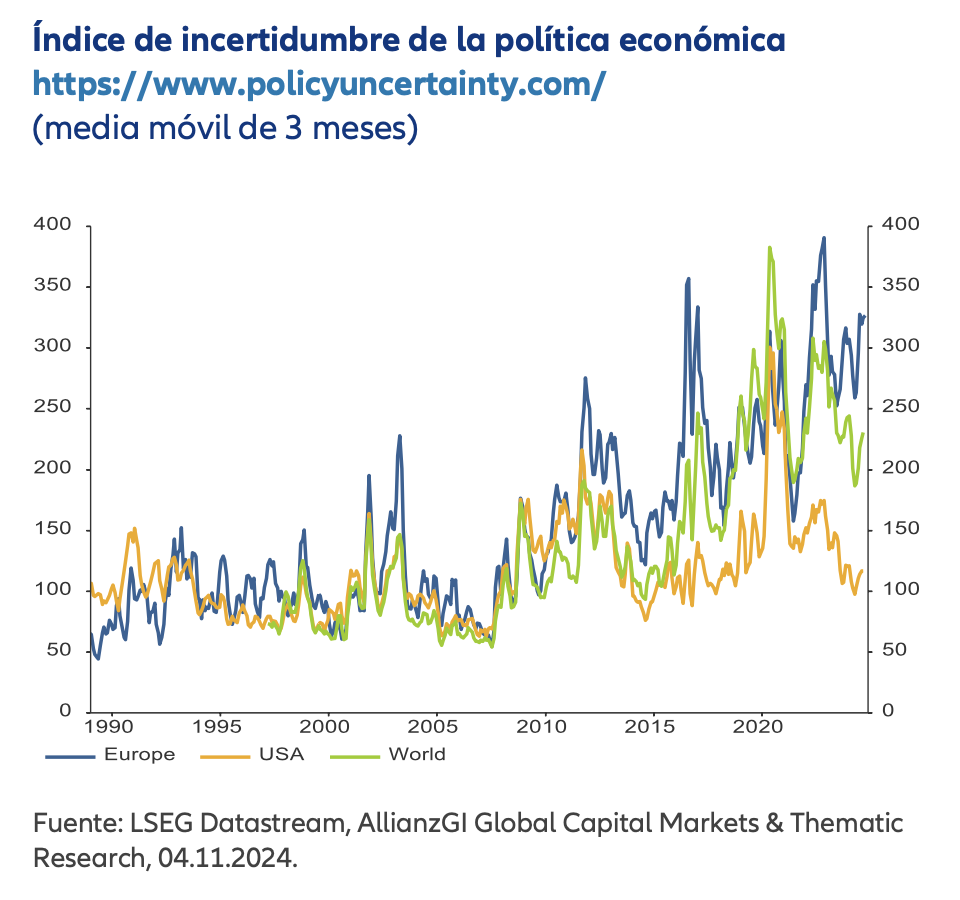 Hans-Jörg Naumer (Allianz GI) | La semana ha estado marcada por varios acontecimientos clave para la economía global. No solo la Reserva Federal (Fed) anunció un nuevo ajuste en su política monetaria, sino que los ciudadanos estadounidenses acudieron a las urnas en unas elecciones presidenciales y legislativas de gran trascendencia, eligiendo tanto al futuro presidente del país como a los representantes de ambas cámaras del Congreso. Aunque a menudo se dice que el impacto de los acontecimientos políticos en los mercados es pasajero, no sería realista aplicar esta idea a la situación actual, ya que los resultados de estas elecciones tienen un peso significativo, especialmente para la economía estadounidense y sus relaciones internacionales.