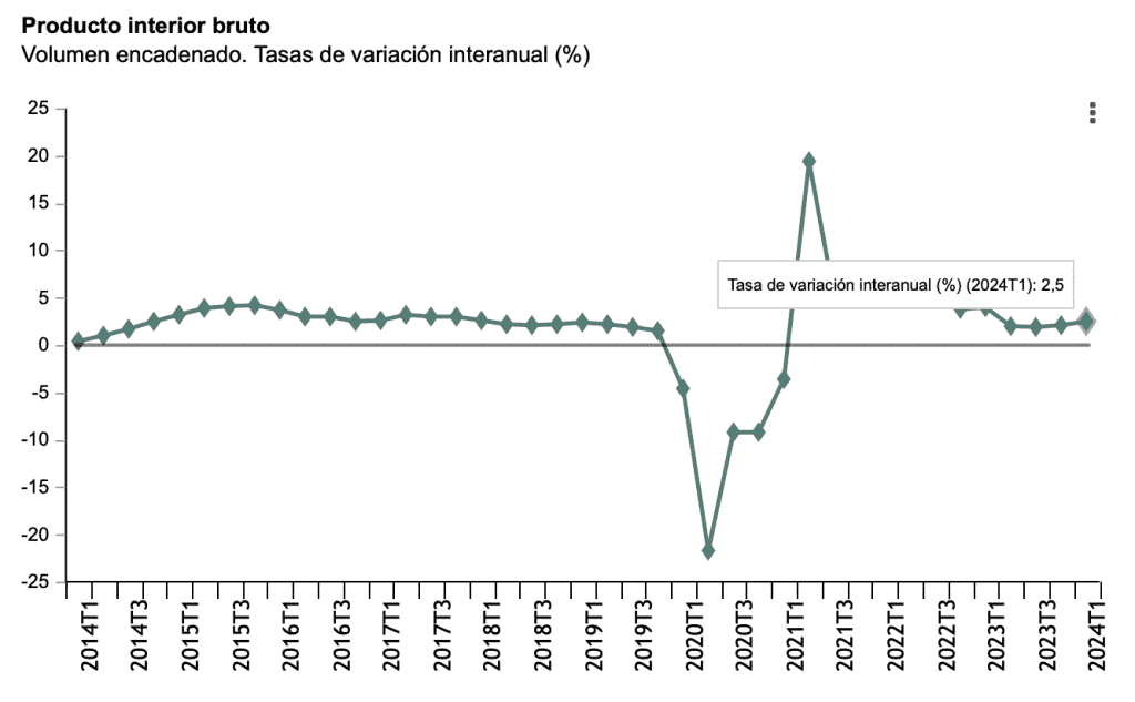 Nuestras estimaciones reflejadas en nuestro último Informe de Estrategia 3T 2024 (publicado el 20 junio) contemplaban un crecimiento de +2,4% a/a, 1 décima menos que la cifra definitiva publicada hoy. Nuestra evaluación cualitativa de este PIB1T es algo menos favorable de lo que estética y preliminarmente puede extraerse de un análisis superficial debido a 2 razones:
