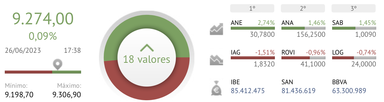 Con todo, el Eurostoxx 50 ha subido un 0,2% y el índice Stoxx Europe 600 ha descendido por sexto día consecutivo, su peor racha desde octubre. Por su parte, el IBEX 35 se acerca a 9.300 puntos, y los índices estadounidenses registran retrocesos de alrededor de un 0,2%, después de su peor semana desde marzo.