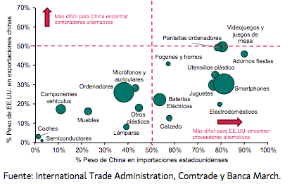 Banca March | La elevada dependencia de EEUU de las importaciones de algunos productos chinos claramente