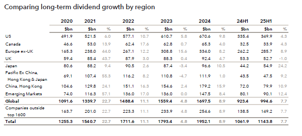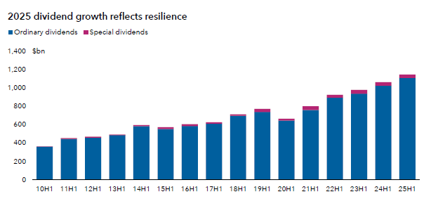 Para el resto de 2025, los patrones estacionales favorecen a las partes del mundo con un crecimiento más lento, y aunque las tendencias actuales supondrán un nuevo impulso a los ingresos totales gracias a la debilidad del dólar, es probable que en términos interanuales los dividendos extraordinarios sean inferiores, al igual que en el primer semestre.