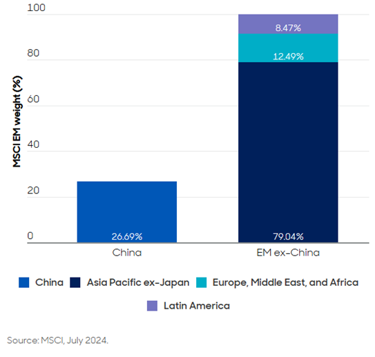 El meteórico ascenso del país ha eclipsado a los mercados emergentes durante más de dos décadas. Sin embargo, los clientes desean cada vez más controlar su exposición a China y sus riesgos asociados. Por lo tanto, creemos que merece la pena tener una estrategia activa separada EM-ex China, combinada con una estrategia activa separada y dedicada a China, que sigue siendo un terreno fértil para los inversores a largo plazo, impulsados por los fundamentales.