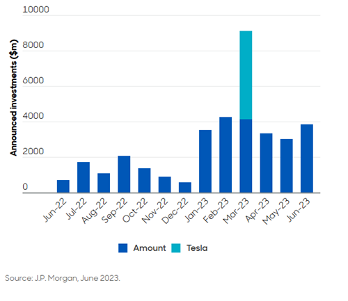 De hecho, muchos fabricantes de automóviles que venden en EE.UU. han establecido fábricas en México. En marzo, por ejemplo, una empresa texana de vehículos eléctricos anunció que construiría su próxima fábrica en México (gráfico 9)[8].
