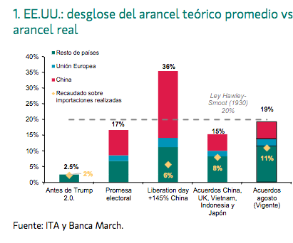 Todo ello en una semana que ha venido marcada por nuevas ambigüedades: mientras el miércoles rebajaba los aranceles sobre los automóviles y componentes europeos con efecto retroactivo, el jueves anunciaba un nuevo gravamen del 100% a los fármacos con patente, el más alto a un producto individual –todo ello mientras continúa el curso de la investigación de la sección 232 sobre productos farmacéuticos–. Una medida que afectaría de forma menos dañina a los productos europeos –que mantendrían la tasa del 15%–, y a Japón y Reino Unido, que ya tienen acuerdos previos. Pero, de llegar a aplicarse, podría elevar el promedio teórico de las importaciones totales hasta el 21,6%, dado que, en EE.UU., aunque el 90% de los fármacos que se prescriben son genéricos, el 87% del gasto se concentra en medicamentos patentados.