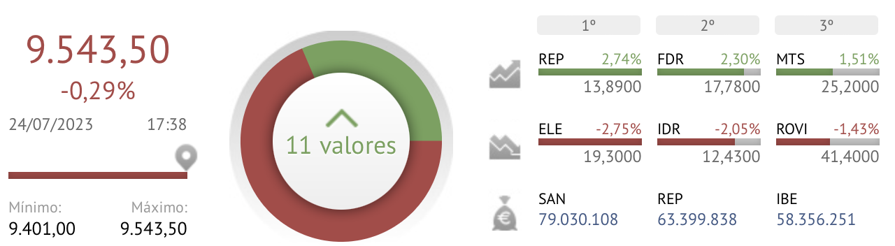 La sesión ha experimentado descensos generalizados en las Tires de los bonos soberanos. Dadas las peores cifras en Europa, el descenso de la inflación en Estados Unidos y la lenta recuperación de China desde su reapertura, los mercados de futuros asumen que el alza esperada de un cuarto de punto de la Reserva Federal a 5,25-5,50% el miércoles será la última de una contracción de 16 meses, con menos del 50% de probabilidad de un nuevo movimiento más adelante en el año. Los mercados monetarios asumen la misma situación para el BCE, situando la tasa terminal de la facilidad de depósito en el 3,75% para este ciclo.