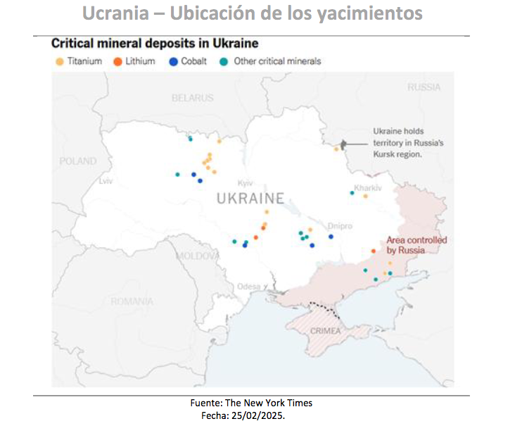 Intermoney | Esta semana Ucrania y EEUU están trabajando en un acuerdo de paz. Aunque aún no se conoce de manera oficial cómo se estructurará, lo más probable es que se cree un fondo entre ambos países destinado a recaudar y reinvertir los ingresos procedentes de los minerales, hidrocarburos y otros materiales extraíbles, donde Ucrania aportaría al fondo el 50% de los ingresos menos los gastos de funcionamiento hasta que las aportaciones alcanzaran la suma de 500.000 millones de dólares.