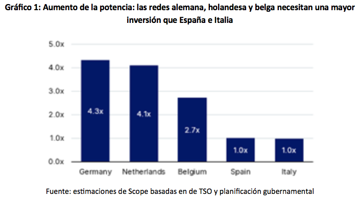 Mikel Zabala (Scope Ratings) | Alemania, Países Bajos y Bélgica necesitan mucha más inversión que los países del sur de Europa para modernizar sus redes de transporte de electricidad hasta 2034, de ahí la importancia de haber asegurado la mayor parte de los más de 200.000 millones de euros de financiación necesarios.